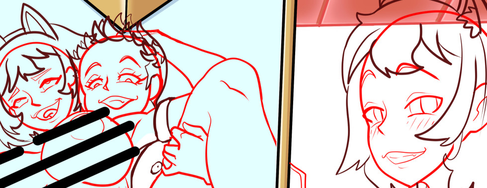 Work-in-progress of last month's Character Poll winner. Starting with the 2 suggestions in which Yang has to watch her wife Blake getting taken in a full nelson.